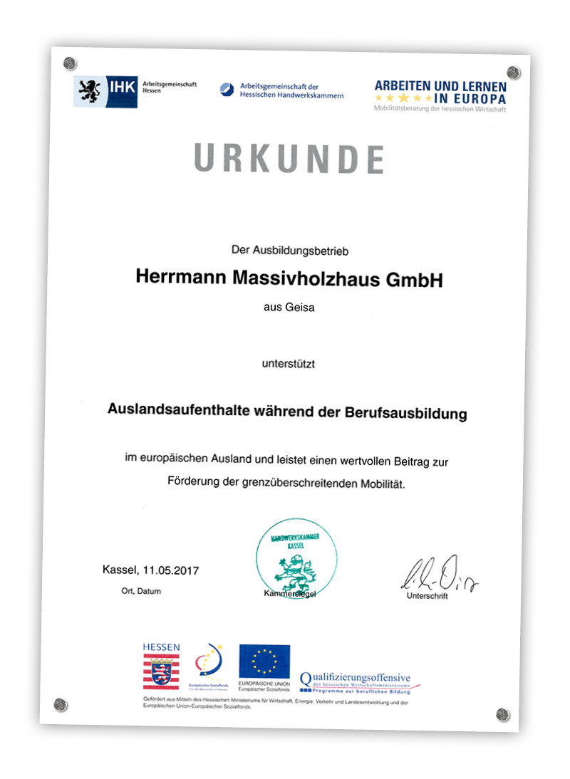 Gerne unterstützen wir Auslandsaufenthalte während der Berufsausbildung im europäischen Ausland.